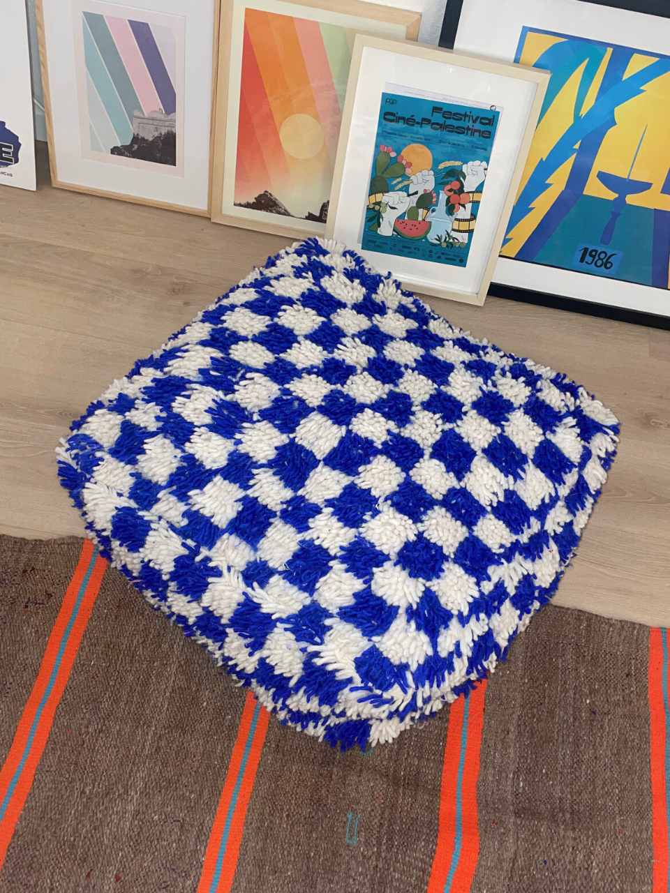 Ce qui distingue ce pouf berbère en laine damier blanc et bleu majorelle, c’est son caractère unique. Chaque pièce est tissée à la main avec soin, ce qui signifie qu’aucun deux poufs ne seront exactement identiques. Ils peuvent présenter de légères variations de motif et de couleur, ce qui les rend véritablement uniques. De plus, le processus de tissage à la main confère à chaque pouf une qualité et une durabilité exceptionnelles, en faisant un investissement pour les années à venir.